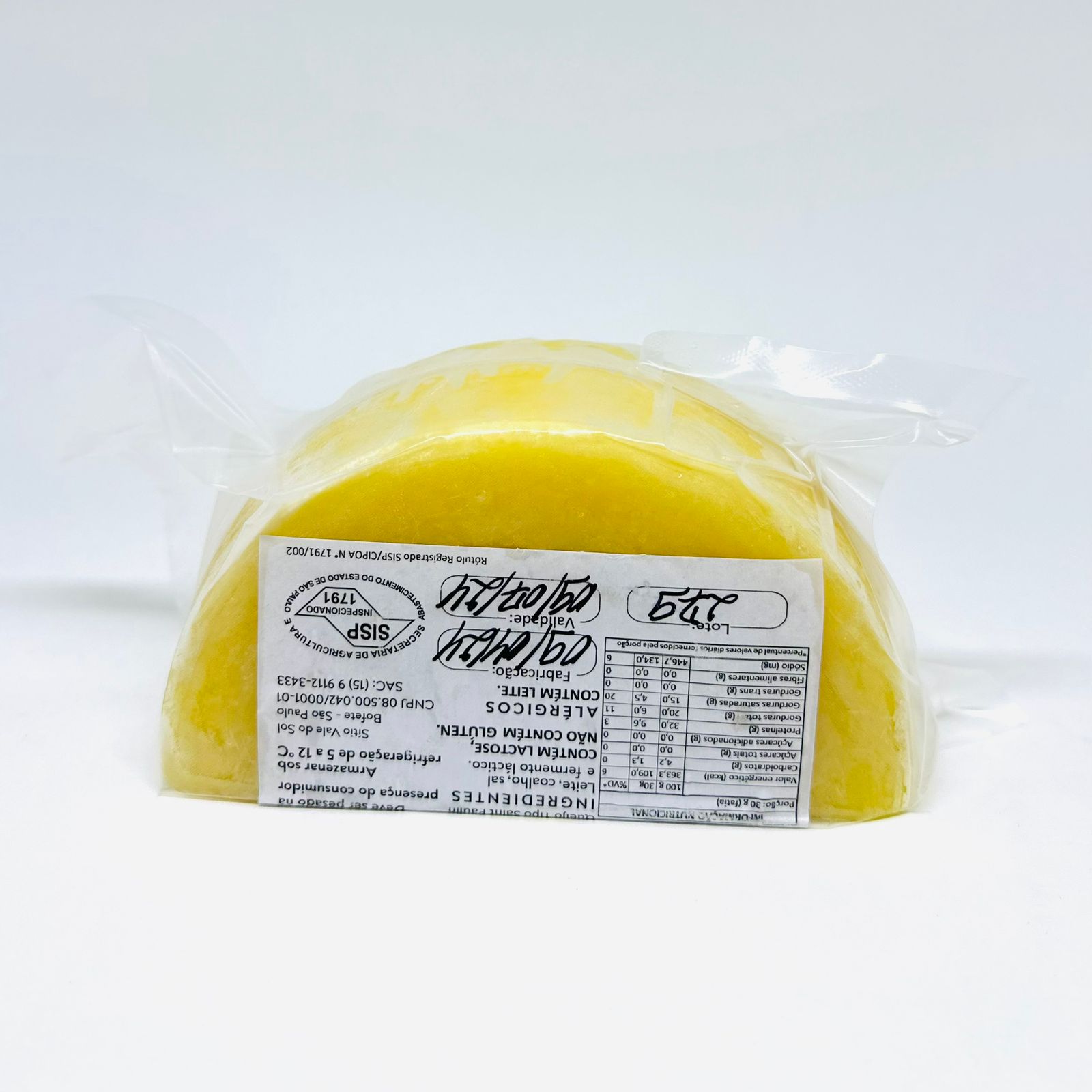 Queijo meia cura de massa semi cozida, mole por dentro e durinho por fora. Queijo amanteigado, mas firme o suficiente para fatiar. Ideal para café da manhã, em sanduíches quentes ou frios, na pizza, com doces, no pastel, com mel, geléias, entre outros.