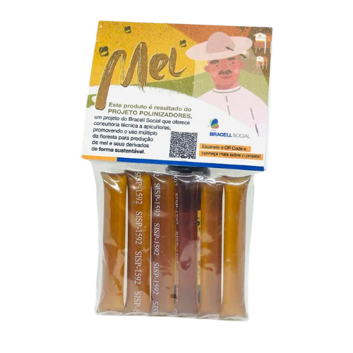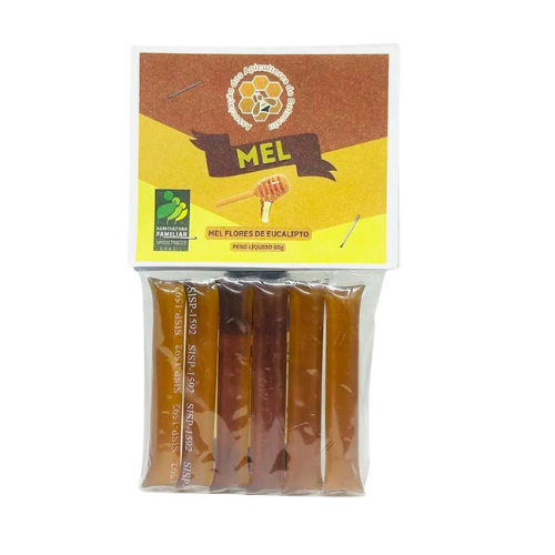 Sachês de Mel puro in Natura de Flores de Eucalipto.  É perfeito para adoçar chás, infusões, iogurtes, panquecas, torradas e diversas outras receitas. Também pode ser utilizado como cobertura em sobremesas, como melancia, sorvetes e queijos.